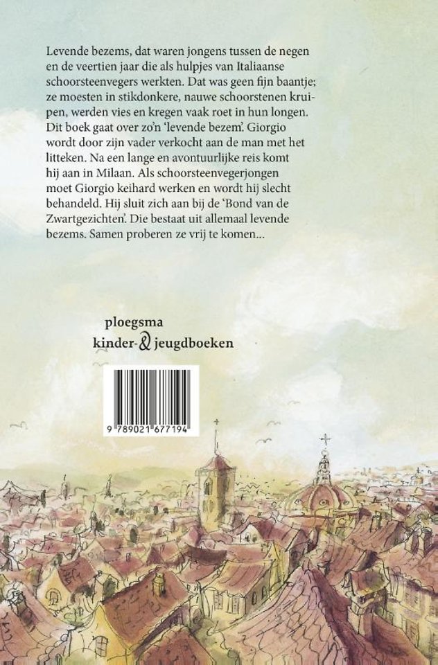Dit boek gaat over zo'n 'levende bezem'. Giorgio wordt door zijn vader verkocht aan de man met het litteken. Na een lange en avontuurlijke reis komt hij aan in Milaan. Als schoorsteenvegerjongen moet Giorgio keihard werken en wordt hij slecht behandeld. Hij sluit zich aan bij de 'Bond van de Zwartgezichten'. Die bestaat uit allemaal levende bezems. Samen proberen ze vrij te komen...