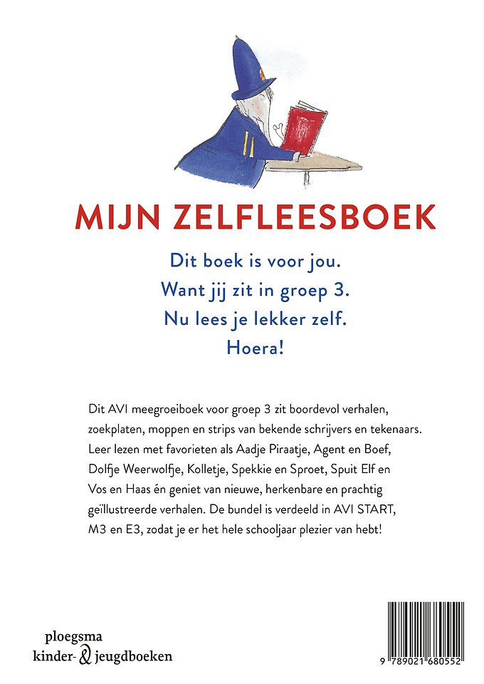 Dit AVI meegroeiboek voor groep 3 zit boordevol verhalen, zoekplaten, moppen en strips van bekende schrijvers en tekenaars. Leer lezen met favorieten als Aadje Piraatje, Agent en Boef, Dolfje Weerwolfje, Kolletje, Spekkie en Sproet, Spuit Elf en Vos en Haas én geniet van nieuwe, herkenbare en prachtig geïllustreerde verhalen. De bundel is verdeeld in AVI START, M3 en E3, zodat je er het hele schooljaar plezier van hebt!