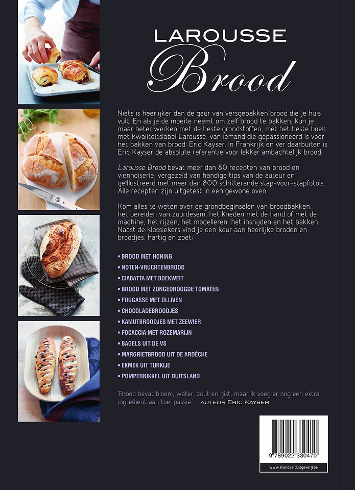 Niets is heerlijker dan de geur van versgebakken brood die je huis vult. En als je dan de moeite neemt om zelf brood te bakken, kun je maar beter werken met de beste grondstoffen, met het beste boek met kwaliteitslabel Larousse, van iemand die gepassioneerd is voor het bakken van brood: Eric Kayser. In Frankrijk en ver daarbuiten is Eric Kayser de absolute referentie voor lekker ambachtelijk brood.