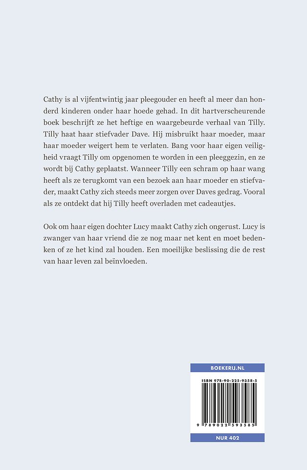Cathy is al vijfentwintig jaar pleegouder en heeft al meer dan honderd kinderen onder haar hoede gehad. In dit hartverscheurende boek beschrijft ze het heftige en waargebeurde verhaal van Tilly. Tilly haat haar stiefvader Dave. Hij misbruikt haar moeder, maar haar moeder weigert hem te verlaten. Bang voor haar eigen veiligheid vraagt Tilly om opgenomen te worden in een pleeggezin, en ze wordt bij Cathy geplaatst. Wanneer Tilly een schram op haar wang heeft als ze terugkomt van een bezoek aan haar moeder en stiefvader, maakt Cathy zich steeds meer zorgen over Daves gedrag. Vooral als ze ontdekt dat hij Tilly heeft overladen met cadeautjes.