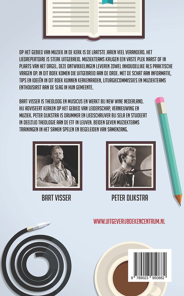 Bart Visser is theoloog en musicus en werkt bij New Wine Nederland. Hij adviseert kerken op het gebied van leiderschap, vernieuwing en muziek. Peter Dijkstra is drummer en liedschrijver bij Sela en studeert in deeltijd theologie aan de ETF in Leuven. Beiden geven muziekteams trainingen in het samen spelen en begeleiden van samenzang.