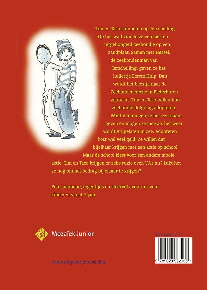 Op het wad vinden Tim en Taco een ziek en uitgehongerd zeehondje op een zandplaat. Samen met Hessel, de zeehondenman van het eiland, brengen ze het naar de Zeehondencrèche in Pieterburen. Tim en Taco willen hun zeehondje dolgraag adopteren. Want dan mogen ze het een naam geven en mogen ze mee als het weer wordt vrijgelaten in zee. Maar adopteren kost veel geld. Lukt het Tim en Taco om het bedrag bij elkaar te krijgen?