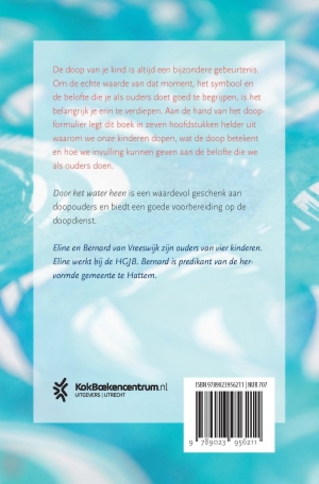 Door het water heen van Bernhard en Eline van Vreeswijk biedt voor ouders een goede voorbereiding op de doop. Aan de hand van het doopformulier legt het in zeven hoofdstukken uit waarom we onze kinderen dopen, wat de doop betekent en hoe we invulling kunnen geven aan de belofte die we als ouders doen. De doop van je kind is altijd een bijzondere gebeurtenis voor de ouders. Om de echte waarde van dat moment, het symbool en de belofte die je doet als ouders goed te begrijpen, is het belangrijk je erin te verdiepen. Daarbij wil het boek Door het water heen helpen. Het De auteurs weten het zo te verwoorden dat iedereen het begrijpt. Door het water heen is een waardevol geschenk aan doopouders.