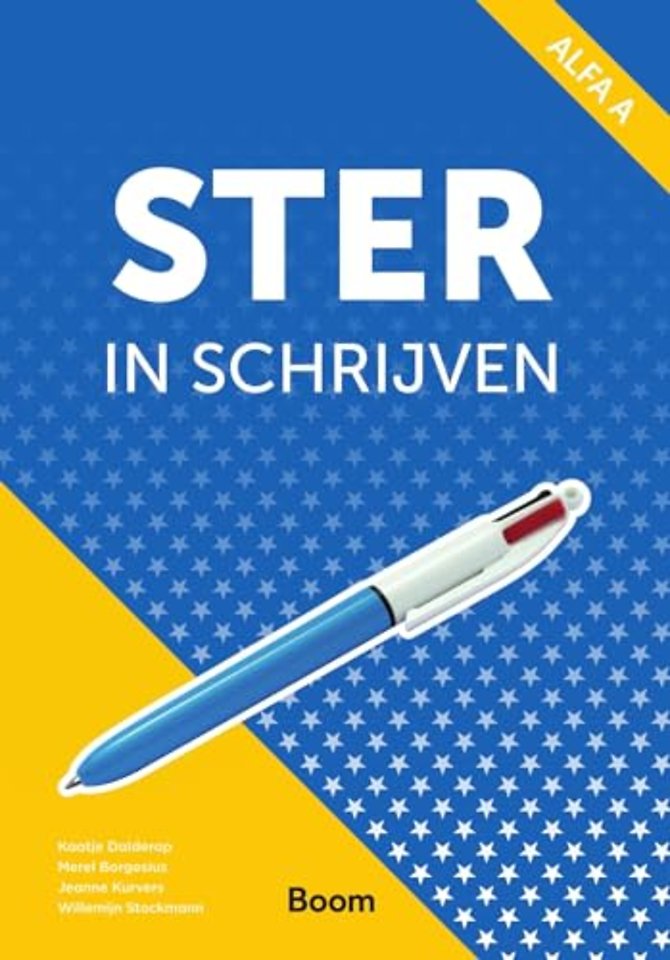 In Ster in schrijven worden anderstalige jongeren op alfabetiseringsniveau in aansprekende taken meegenomen door Bem, Milka, Mo, Rada en Tuu. Samen met deze leeftijdsgenoten ontwikkelt de ISK-leerling de schrijfvaardigheid. Bij iedere taak worden nieuwe woorden geleerd en werken leerlingen aan schrijfvaardigheid door afwisselende verwerkingsopdrachten. De taken zijn verdeeld in de thema’s Naar school, Vrije tijd, Thuis, Nederland en Toekomst.