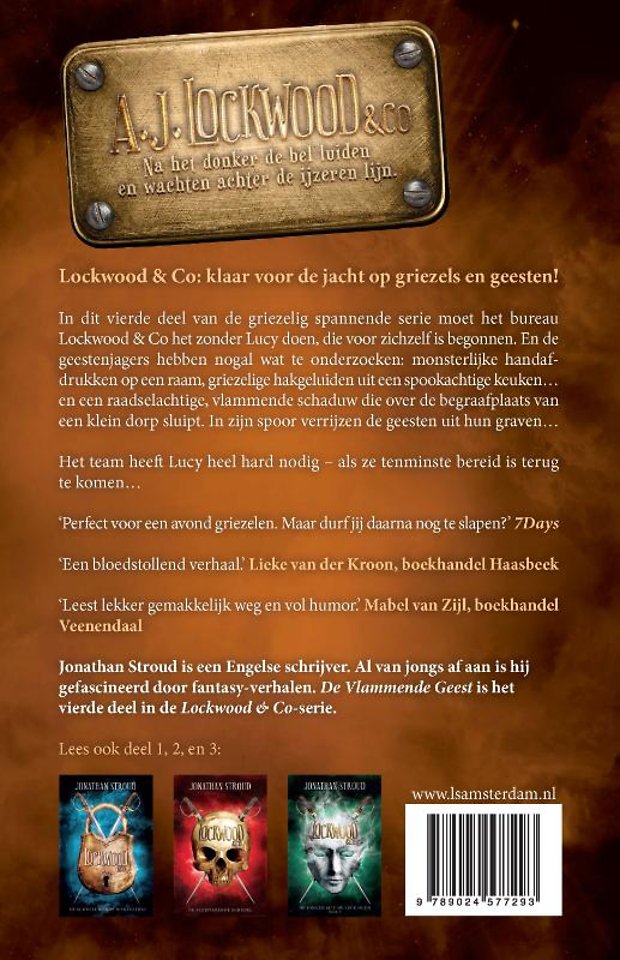 De Vlammende Geest is het vierde deel van de griezelig spannende serie Lockwood & Co van Jonathan Stroud. De boeken zijn origineel, avontuurlijk en vol humor – voor iedereen die heeft genoten van Harry Potter, De Grijze Jager en de boeken van Rick Riordan.