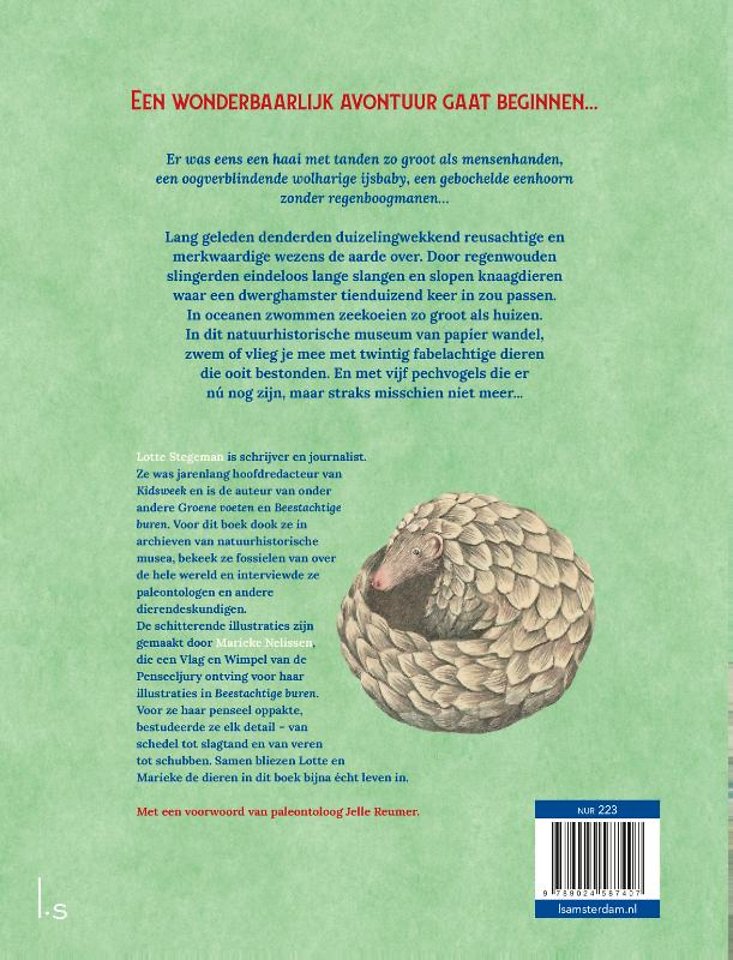 Lotte Stegeman laat je in dit boek kennismaken met de allergrootste wurgslang, de voorouder van de komodovaraan (die nóg groter was), een mega-aap, de oerwalvis, de reuzengrondluiaard en nog veel meer ontzagwekkende dieren. De schitterende illustraties van Marieke Nelissen maken dat je urenlang door dit boek wilt bladeren!