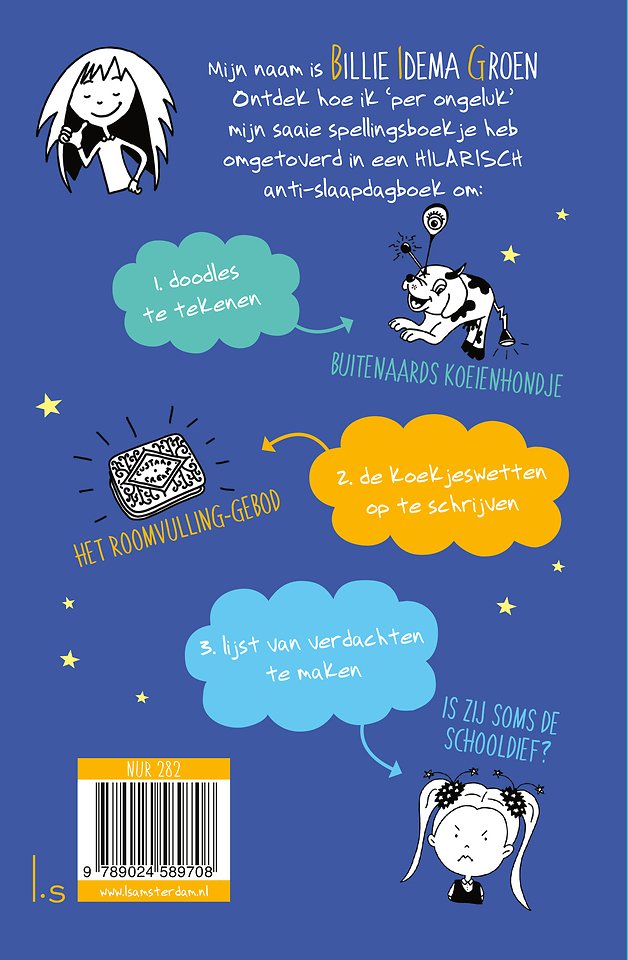Welkom in het leven van Billie Idema Groen – een meisje met drie ongelukkige initialen, twee lieve moeders en één grote vergissing die haar leven flink op z’n kop zet. Er is een nieuw meisje op Billies school, en Billie leidt haar rond. Ze vertelt haar van alles over school en de Koekjeswet. En ja… ook over het feit dat twee vrouwen met elkaar kunnen trouwen (de bruiloft van Billies moeders is het evenement van het jaar, tenslotte). Maar dan gebeuren er verdachte dingen. Het nieuwe meisje lijkt wel erg close met Billies beste vriendin Dayla. En hoe komt het dat ze zoveel weet over de grote overval op school, de diefstal van mevrouw Robinsons tas?