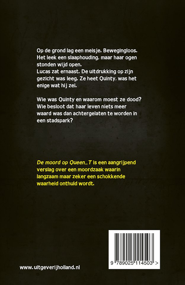 De moord op Queen_T is een aangrijpend verslag over een moordzaak waarin langzaam maar zeker een schokkende waarheid onthuld wordt. Tanja de Jonge schreef niet alleen een spannend verhaal, maar gaat ook actuele thema's die jongeren bezighouden niet uit de weg.