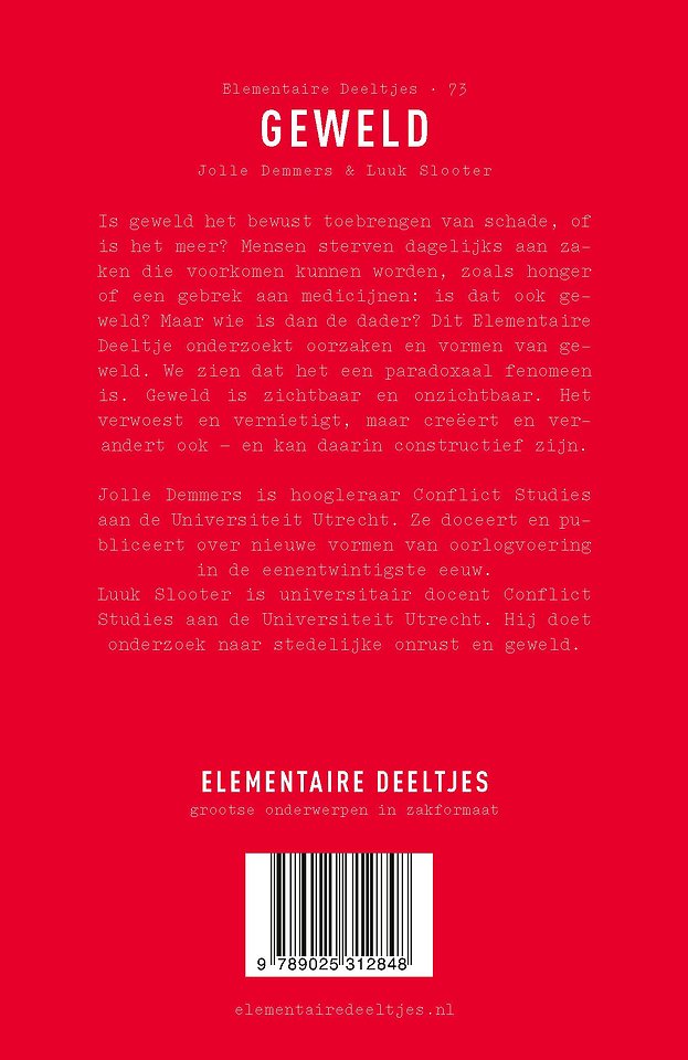 Jolle Demmers en Luuk Slooter onderzoeken oorzaken en vormen van geweld. Ze laten zien dat het een paradoxaal fenomeen is: zichtbaar en onzichtbaar. Geweld verwoest en vernietigt, maar het creëert en verandert ook – en kan daarin constructief zijn.