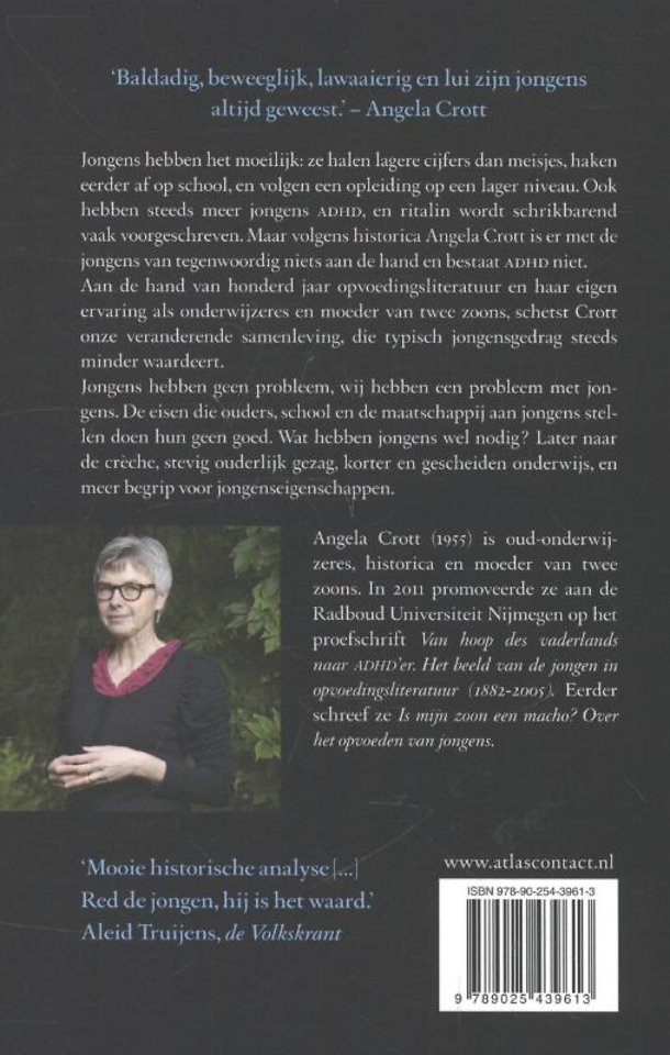 Aan de hand van honderd jaar opvoedingsliteratuur en haar eigen ervaring als onderwijzeres en moeder van twee zoons, schetst Crott onze veranderende samenleving, die typisch jongensgedrag steeds minder waardeert.