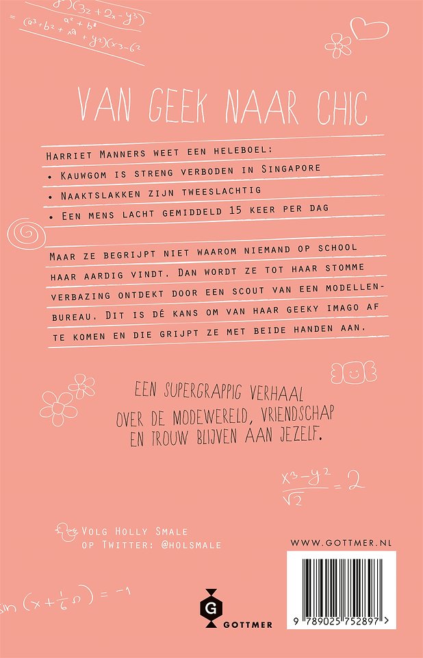 'Mijn naam is Harriet Manners en ik ben een "geek". Ik weet dat omdat ik het net heb opgezocht in het woordenboek. Ik heb een vinkje gezet naast de symptomen die ik herken, en ze blijken allemaal op mij van toepassing! Eerlijk gezegd komt het niet als een enorme verrassing.'Harriet Manners weet best veel; zo weet ze dat een mens gemiddeld 15 keer per dag lacht, hommels niet kunnen lopen, en dolfijnen met één oog open slapen. Ze is geen nerd, maar een charmante allesweter - een geek, zeg maar. Er is alleen één ding waar ze absoluut niets van begrijpt: mode. Maar hier komt verandering in als ze op een dag wordt gecast als model en besluit dat dit dé kans is om van haar geeky imago af te komen. Terwijl ze in hilarische situaties belandt, komt ze erachter dat er niet bepaald een klik is met de modewereld. Maar kan ze nog teruggaan naar de oude Harriet die ze ooit was?
