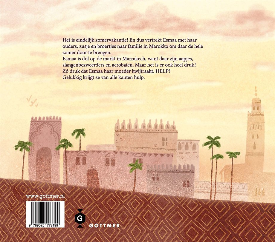 Esmaa gaat deze zomervakantie met haar ouders, broertjes en zusje op reis, naar familie die in Marokko woont. Op de heenreis zitten er pindakaas en chocopasta in de koffer, en op de terugweg saffraan en oranjebloesemolie en nog veel meer prachtige spullen en lekkere kruiden.