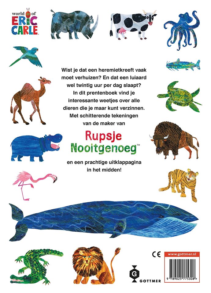We kennen Eric Carle natuurlijk allemaal van 'Rupsje Nooitgenoeg', maar dit boek onderstreept dat de wereldberoemde prentenboekenmaker ook bosdieren, savannedieren, zeedieren en boerderijdieren in ware kunstwerkjes kon veranderen.