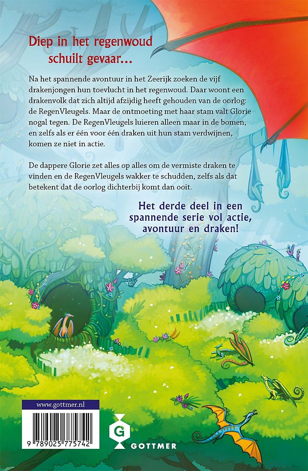 De mysterieuze RegenVleugels hebben zich in hun oerwoud altijd afzijdig gehouden van de oorlog. De andere stammen noemen hen lui. Glorie weet dat dit niet waar kan zijn: zij is dapper en dodelijk. Maar als de drakenjongen gedwongen worden het oerwoud in te vluchten, vinden ze daar draken die zichzelf nauwelijks draken mogen noemen. Ze luieren in de bomen en zelfs als er draken beginnen te verdwijnen doen ze niets. Glorie zet alles op alles om de vermiste draken te vinden en de RegenVleugels wakker te schudden, zelfs als dat betekent dat de oorlog dichterbij komt dan ooit.