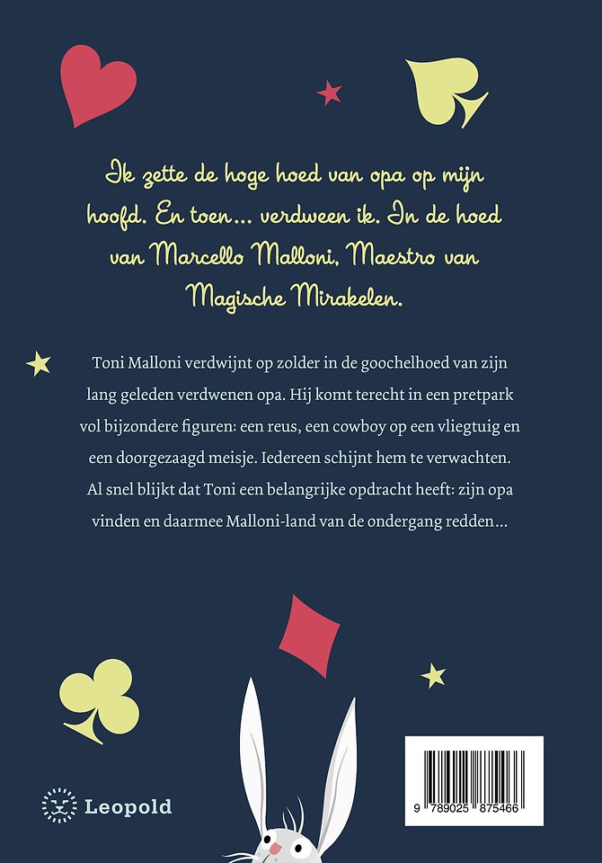 Toni Malloni verdwijnt op zolder in de goochelhoed van zijn lang geleden verdwenen opa. Hij komt terecht in een pretpark vol bijzondere figuren: een reus, een cowboy op een vliegtuig en een doorgezaagd meisje. Iedereen schijnt hem te verwachten. Al snel blijkt dat Toni een belangrijke opdracht heeft: zijn opa vinden en daarmee Malloni-land van de ondergang redden...
