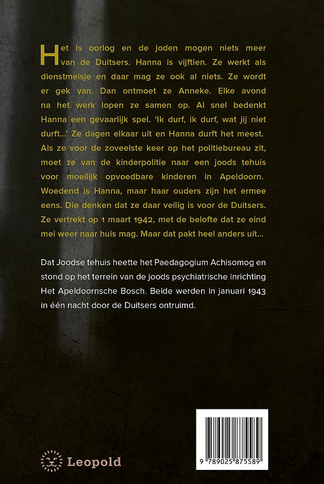 Het is oorlog en de joden mogen niets meer van de Duitsers. Hanna is vijftien. Ze werkt als dienstmeisje en daar mag ze ook al niets. Ze wordt er gek van. Dan ontmoet ze Anneke. Elke avond na het werk lopen ze samen op. Al snel bedenkt Hanna een gevaarlijk spel. ‘Ik durf, ik durf, wat jij niet durft…’ Ze dagen elkaar uit en Hanna durft het meest.