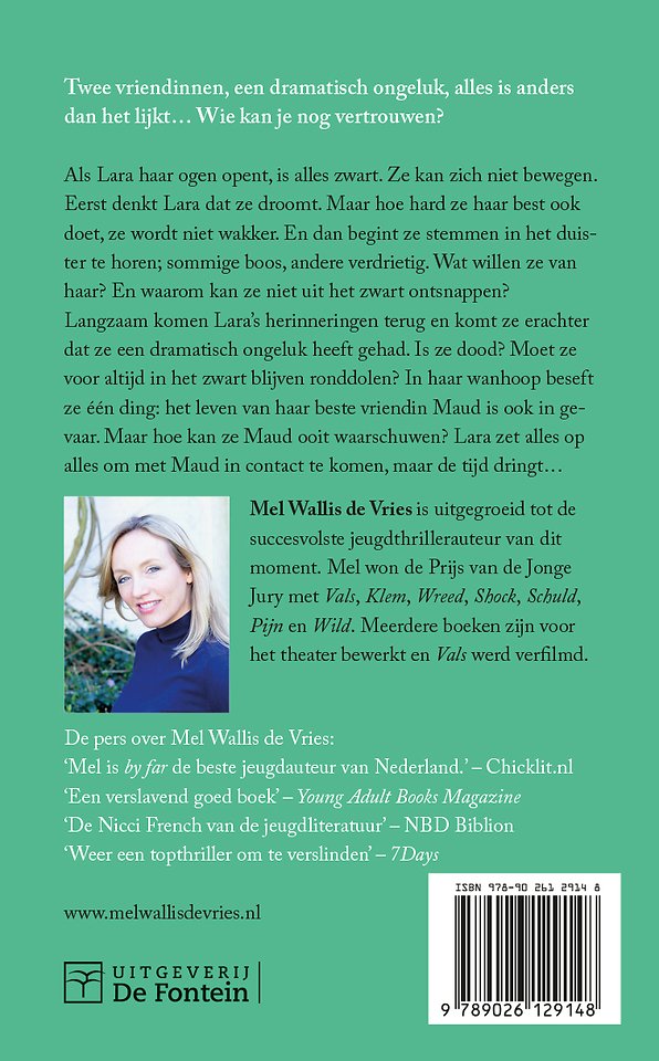 Twee vriendinnen, een dramatisch ongeluk, niets is wat het lijkt. Wie kan je nog vertrouwen? Als Lara haar ogen opent, is alles zwart. Ze kan zich niet bewegen. Eerst denkt ze dat ze droomt. Maar hoe hard ze haar best ook doet, ze wordt niet wakker. En dan begint ze stemmen in het duister te horen. Sommige stemmen zijn boos, andere verdrietig. Lara is bang voor de stemmen die onophoudelijk hoorbaar zijn. Wat willen ze van haar? En waarom kan ze niet uit het zwart ontsnappen? Dan komt Lara erachter dat ze een dramatisch ongeluk heeft gehad, en slaat de paniek toe. Is ze dood? Moet ze voor altijd in het duister blijven ronddolen? In haar wanhoop beseft ze één ding: het leven van haar beste vriendin Maud is ook in gevaar. Maar hoe kan ze Maud waarschuwen? En is het misschien al te laat? Lara zet alles op alles om met Maud in contact te komen, maar de grenzen tussen waarheid, bedrog en echte vriendschap zijn akelig dun.