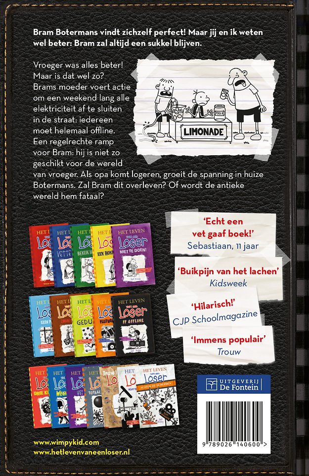 Bram Botermans moet helemaal offline in ff offline, deel 10 van Jeff Kinneys graphicnovelserie Het leven van een Loser.
