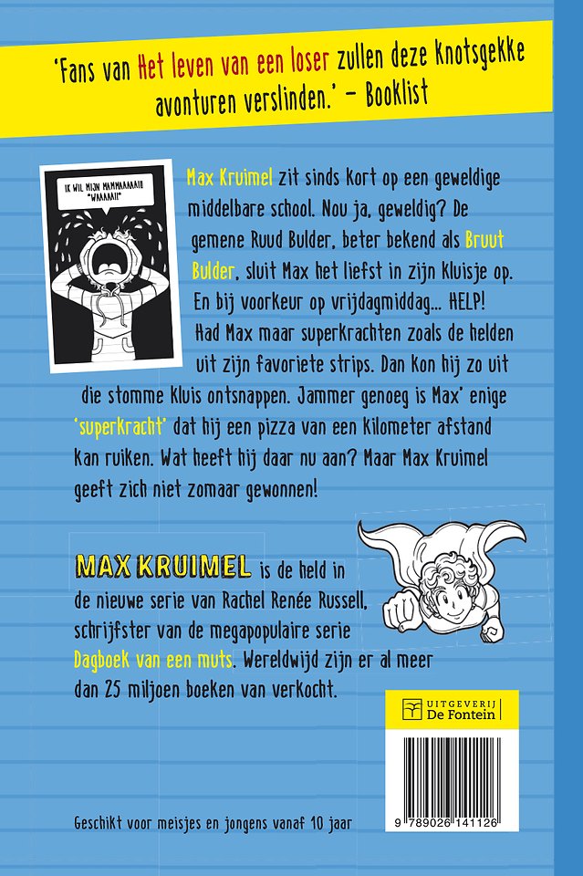 Had Max maar superkrachten zoals de helden uit zijn stripboeken, dan kon hij uit die stomme kluis ontsnappen. Helaas is zijn enige talent dat hij pizza’s van een kilometer afstand kan ruiken. Maar Max Kruimel geeft zich niet zomaar gewonnen.