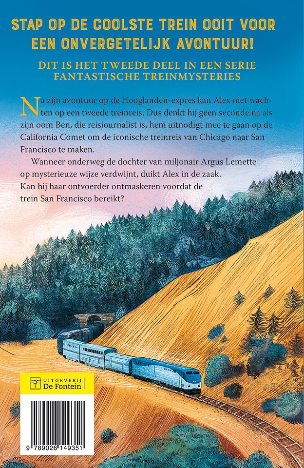 Na zijn avontuur op de Hooglanden-expres kan Alex niet wachten op een tweede treinreis. Dus denkt hij geen seconde na als zijn oom Ben, die reisjournalist is, hem uitnodigt mee te gaan op de California Comet om de iconische treinreis van Chicago naar San Francisco te maken. Wanneer onderweg de dochter van miljonair Argus Lemette op mysterieuze wijze verdwijnt, duikt Alex in de zaak. Kan hij haar ontvoerder ontmaskeren voordat de trein San Francisco bereikt?