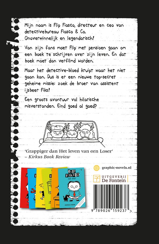 Mijn naam is Flip Fiasco, directeur en ceo van detectivebureau Fiasco & Co. Onoverwinnelijk en legendarisch!
