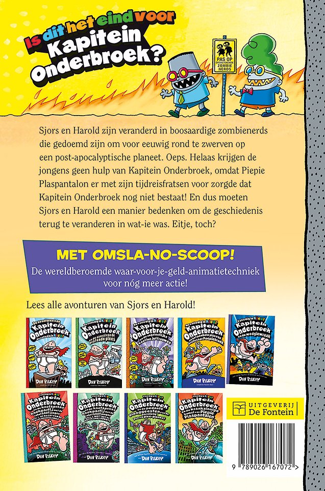 Sjors en Harold zijn veranderd in boosaardige zombienerds die gedoemd zijn om voor eeuwig rond te zwerven op een post-apocalyptische planeet. Oeps. Helaas krijgen de jongens geen hulp van Kapitein Onderbroek, omdat Piepie Plaspantalon er met zijn tijdreisfratsen voor zorgde dat Kapitein Onderbroek nog niet bestaat! En dus moeten Sjors en Harold een manier bedenken om de geschiedenis terug te veranderen in wat-ie was. Eitje, toch?