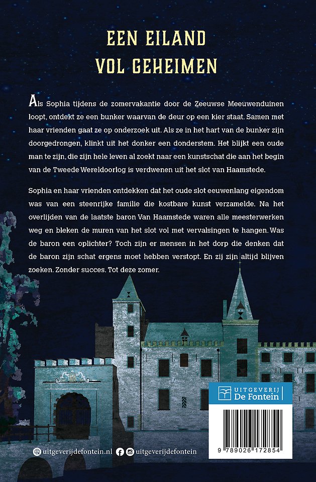 Als Sophia tijdens de zomervakantie door de Zeeuwse Meeuwenduinen loopt, ontdekt ze een bunker waarvan de deur op een kier staat. Samen met haar vrienden gaat ze op onderzoek uit. Als ze in het hart van de bunker zijn doorgedrongen, klinkt uit het donker een donderstem. Het blijkt een oude man te zijn, die zijn hele leven al zoekt naar een kunstschat die aan het begin van de Tweede Wereldoorlog is verdwenen uit het slot van Haamstede. Sophia en haar vrienden ontdekken dat het oude slot eeuwenlang eigendom was van een steenrijke familie die kostbare kunst verzamelde. Na het overlijden van de laatste baron Van Haamstede waren alle meesterwerken weg en bleken de muren van het slot vol met vervalsingen te hangen. Was de baron een oplichter? Toch zijn er mensen in het dorp die denken dat de baron zijn schat ergens moet hebben verstopt. En zij zijn altijd blijven zoeken. Zonder succes. Tot deze zomer.