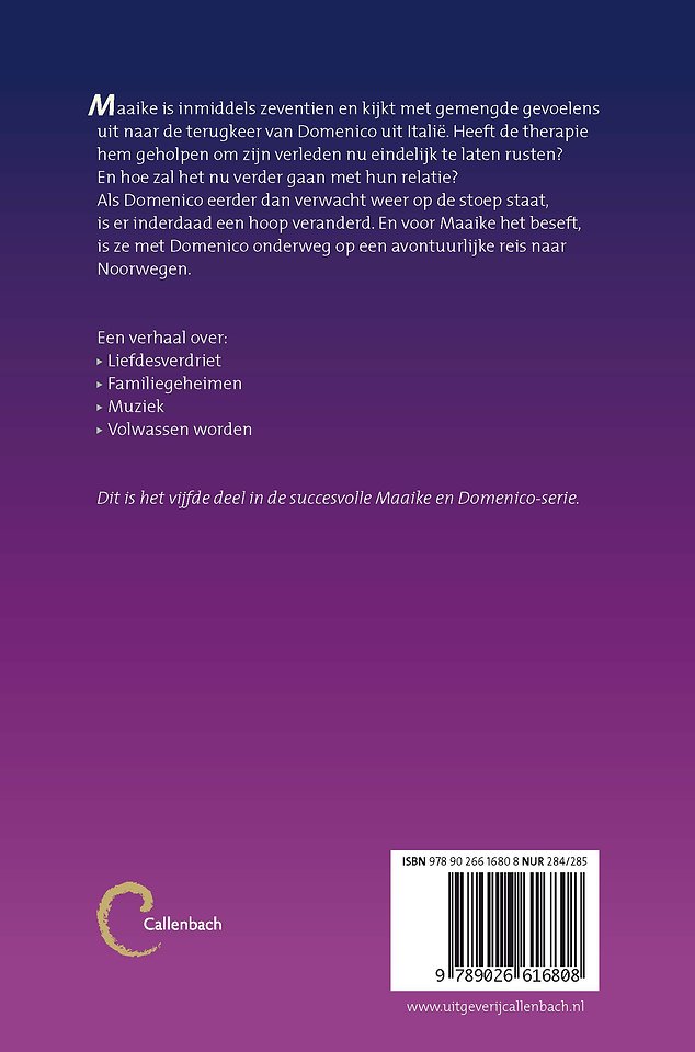 De maaike en Domenicoserie heeft de harten van vele tieners veroverd. Dat merken we aan de verkoopcijfers, dat zien we ook aan de succesvolle M&D pagina’s op Hyves en de vele reacties op Bol.com. Maar wie wil ook níet Maaike zijn, die wegdroomt bij het zien van haar knappe Domenico. Maaike, die meeleeft met zijn leven, dat zo compleet anders is dan het hare. Die samen met Domenico alle problemen te lijf gaat die op zijn pad komen.