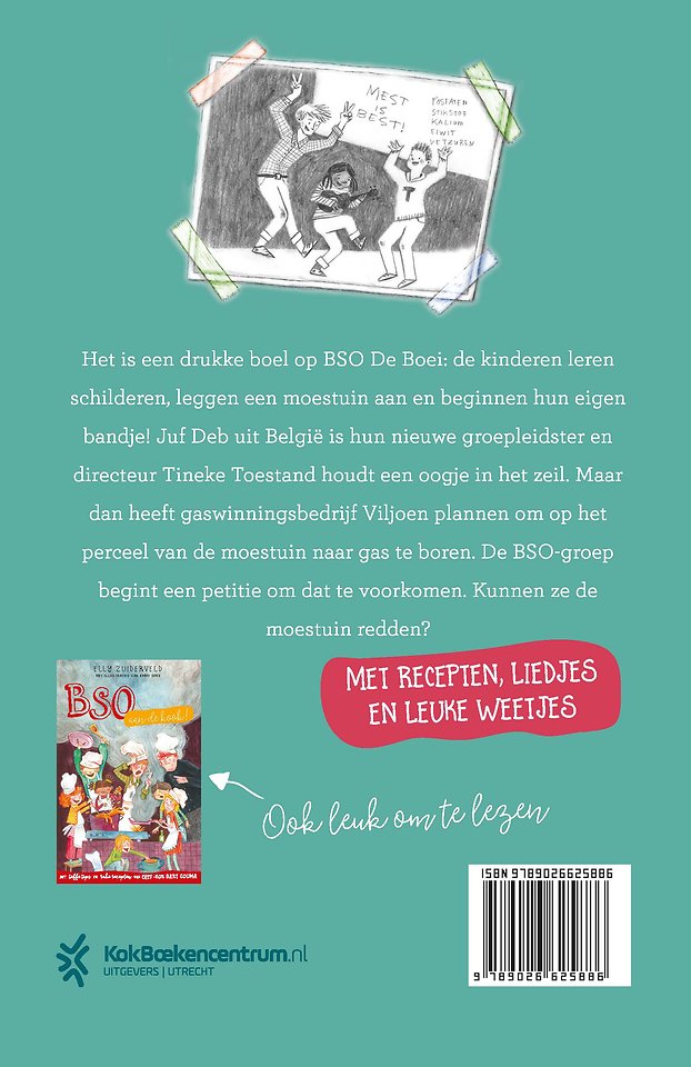 BSO aan de slag! van Elly Zuiderveld, met illustraties van Emmi Smid, is een humoristisch verhaal over de avonturen op BSO De Boei. Er gebeurt weer van alles op de BSO: de kinderen schilderen met de Vlaamse juf Debbie, starten een moestuin en beginnen een eigen bandje! Fien is de zangeres, Ella Westerveld geeft hun les en de anderen spelen een instrument. En natuurlijk zijn Aart en Tineke Toestand ook weer van de partij. Jan Wachter van Omroep TWIXX organiseert een tv-concert, en de BSO-band mag optreden. Een sprankelend vervolg op BSO aan de kook! Met leuke liedjes van Elly en tips om zelf muziek te maken en liedjes te schrijven.