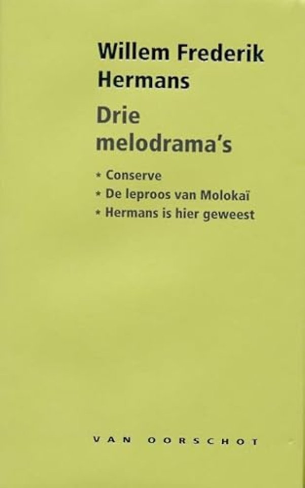 Deze bundeling uit 1957 bevat de drie korte romans Conserve, De leproos van Molokai en Hermans is hier geweest. Door de romantische sfeer, grillige opbouw en sensationele ontwikkelingen in de verhalen zijn het daadwerkelijk melodrama's. Alles wat de avontuurlijke, naar geheimzinnigheid zoekende lezer verlangt, krijgt hij toegediend. Vele revolverkogels worden in deze verhalen verschoten. Vele personages worden door dood en vernietiging bedreigd en de spanning wordt voortdurend tot het uiterste opgevoerd. Deze nieuwe uitgave van de roman bevat de definitieve tekst, zoals opgenomen in de Volledige werken.
