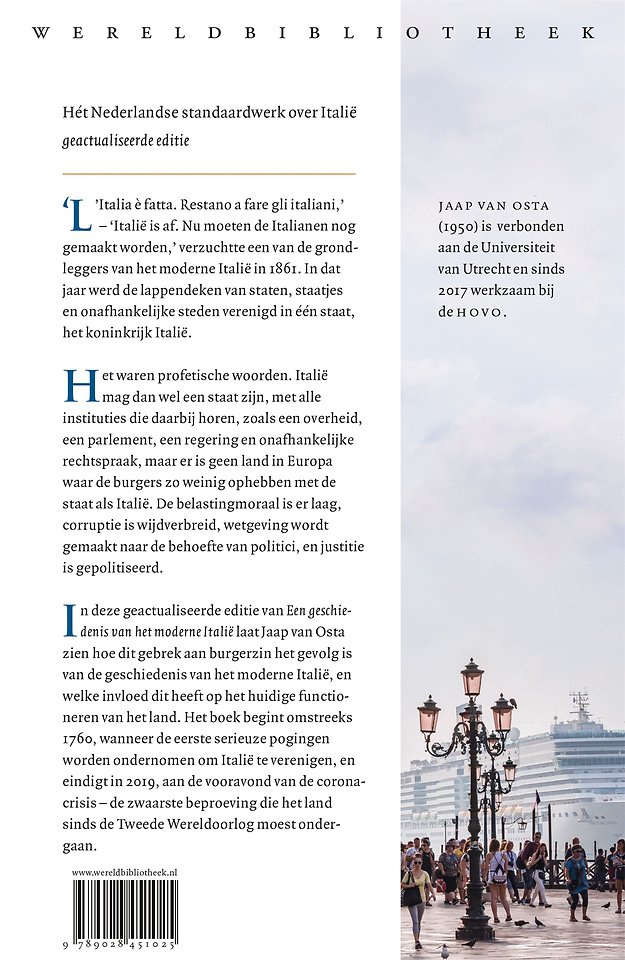 Er is geen land in Europa waar de burgers zo weinig ophebben met de staat als Italië. Er is wel een staat met alle instituties die daarbij horen, maar er is geen natie. De wetgeving wordt gemaakt naar de behoefte van politici, justitie is gepolitiseerd, de belastingmoraal is er laag en corruptie is wijdverbreid. In deze geactualiseerde editie van "Een geschiedenis van het moderne Italië" laat Jaap van Ostalaat zien hoe dit gebrek aan burgerzin het gevolg is van de geschiedenis van het hedendaagse Italië.