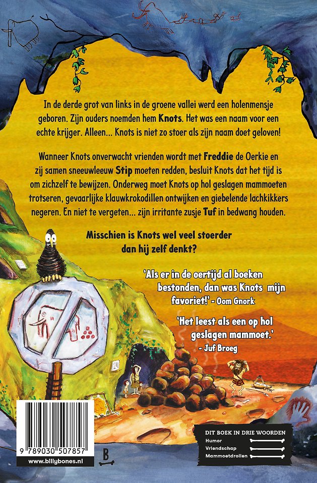 In de derde grot van links in de groene vallei, werd een holenmensje geboren. Zijn ouders noemden hem Knots. Het was een naam voor een echte krijger. Alleen… Knots is niet zo stoer als zijn naam doet geloven!
