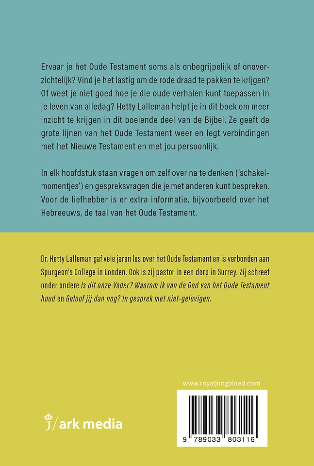 Ervaar je het Oude Testament soms als onbegrijpelijk of onoverzichtelijk? Vind je het lastig om de rode draad te pakken te krijgen? Of weet je niet goed hoe je die oude verhalen kunt toepassen in je leven van alledag? Hetty Lalleman wil je in dit boek helpen om meer inzicht te krijgen in dit boeiende deel van de Bijbel. Ze geeft de grote lijnen van het Oude Testament weer en legt verbindingen met het Nieuwe Testament en met jou persoonlijk.