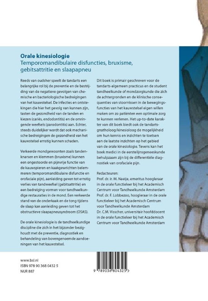 Dit boek is primair geschreven voor de tandarts-algemeen practicus en de student tandheelkunde of mondzorgkunde die zich de achtergronden en de klinische consequenties van stoornissen in de bewegingsfuncties van het kauwstelsel eigen willen maken om zo patiënten een optimale zorg te kunnen verlenen. Het up-to-date karakter van dit boek biedt ook de tandarts-gnatholoog/kinesioloog de mogelijkheid om hun kennis en inzichten te toetsen aan de laatste inzichten op het gebied van de orale kinesiologie. Tevens kan het boek ook medici in de eerstelijnsgeneeskunde behulpzaam zijn bij de differentiële diagnostiek van orofaciale pijn.