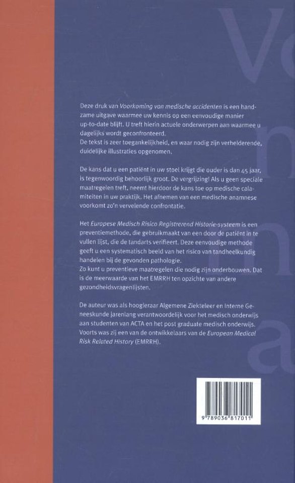 Deze druk van 'Voorkoming van medische accidenten' is een handzame uitgave waarmee uw kennis op een eenvoudige manier up-to-date blijft. U treft hierin onderwerpen aan waarmee u dagelijkswordt geconfronteerd. De tekst is zeer toegankelijkheid, en waar nodig zijn verhelderende, duidelijke illustraties opgenomen.