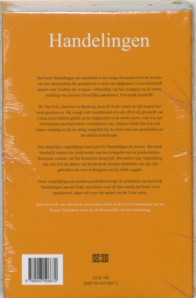 Dr. Van Eck, classicus en theoloog, leest dit boek vanuit de tijd waarin het werd geschreven. Hij vraagt zich voortdurend af welk effect dit geschrift moet hebben gehad op de tijdgenoten in de eerste eeuw, voor wie het christendom een heel nieuw verschijnsel was. Daartoe biedt Van Eck een eigen vertaling en bij de uitleg vergelijk hij de tekst vaak met de geschriften uit de antieke letterkunde.