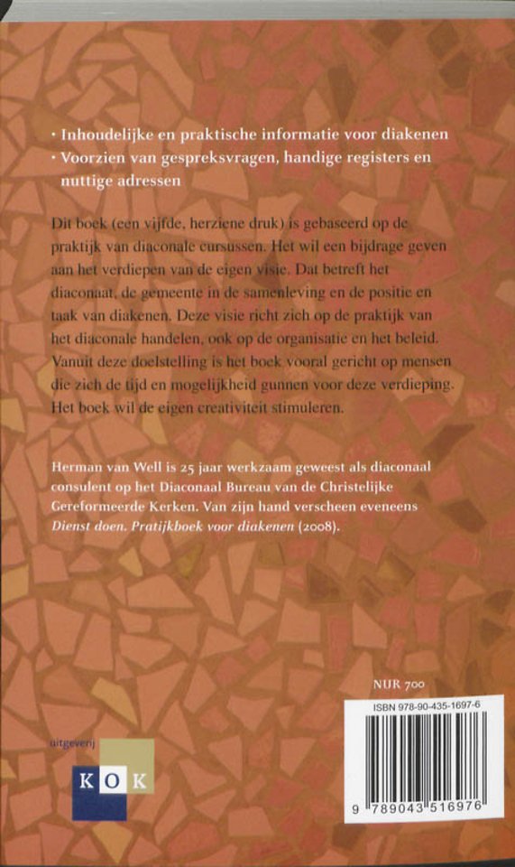 Dit boek (een vijfde, herziene druk) is gebaseerd op de praktijk van diaconale cursussen. Het wil een bijdrage geven aan het verdiepen van de eigen visie. Dat betreft het diaconaat, de gemeente in de samenleving en de positie en taak van diakenen. Deze visie richt zich op de praktijk van het diaconale handelen, ook op de organisatie en het beleid. Vanuit deze doelstelling is het boek vooral gericht op mensen die zich de tijd en mogelijkheid gunnen voor deze verdieping. Het boek wil de eigen creativiteit stimuleren.