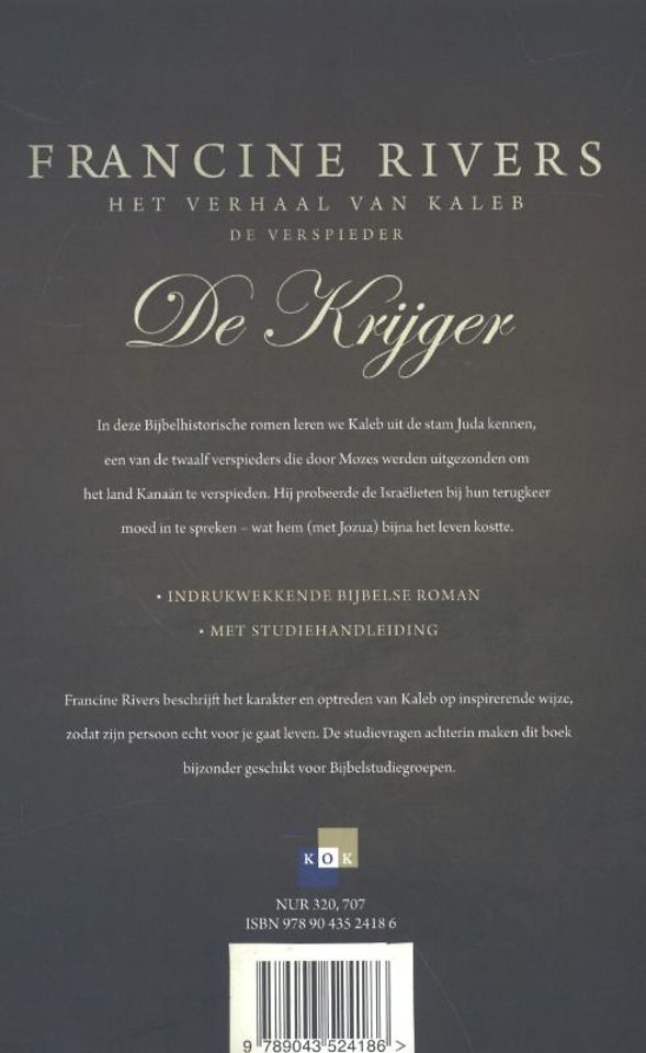 'De krijger' van Francine Rivers is het tweede deel in een serie over mannen in de Bijbel die een belangrijke plaats innamen in de geschiedenis van Israël. Getrouw aan de feiten zoals die in de Bijbel zijn vermeld, brengt de schrijfster mannen van lang geleden tot leven en laat zij ze spreken op een bijdetijdse en inspirerende wijze.