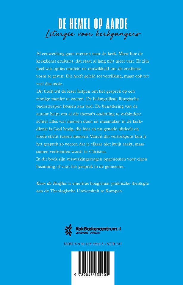 De hemel op aarde. Liturgie voor kerkgangers van Kees de Ruijter is een populair-theologische uitgave waarin de belangrijkste aspecten van de liturgie worden behandeld, met het oog op het gesprek in de gemeente.