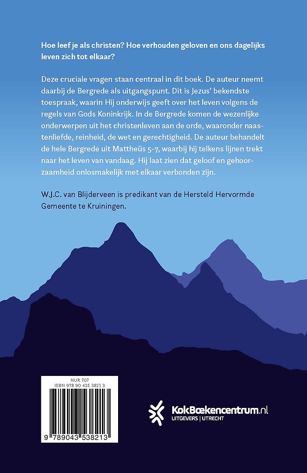 Geloven en gehoorzamen van ds. W.J.C van Blijderveen is een inspirerend bijbelstudieboek over de manier waarop mensen van nu de Bergrede kunnen toepassen in hun leven. Hoe leef je als christen? Hoe verhouden geloven en ons dagelijks leven zich tot elkaar? Deze cruciale vragen staan centraal in dit boek. De auteur neemt daarbij de Bergrede als uitgangspunt. De Bergrede is Jezus’ bekendste toespraak waarin Hij onderwijs geeft over het leven volgens de regels van Gods Koninkrijk. In de Bergrede komen de wezenlijke onderwerpen uit het christenleven aan de orde. Telkens trekt de auteur lijnen naar het leven vandaag. Hij laat zien dat geloof en gehoorzaamheid onlosmakelijk met elkaar verbonden zijn.