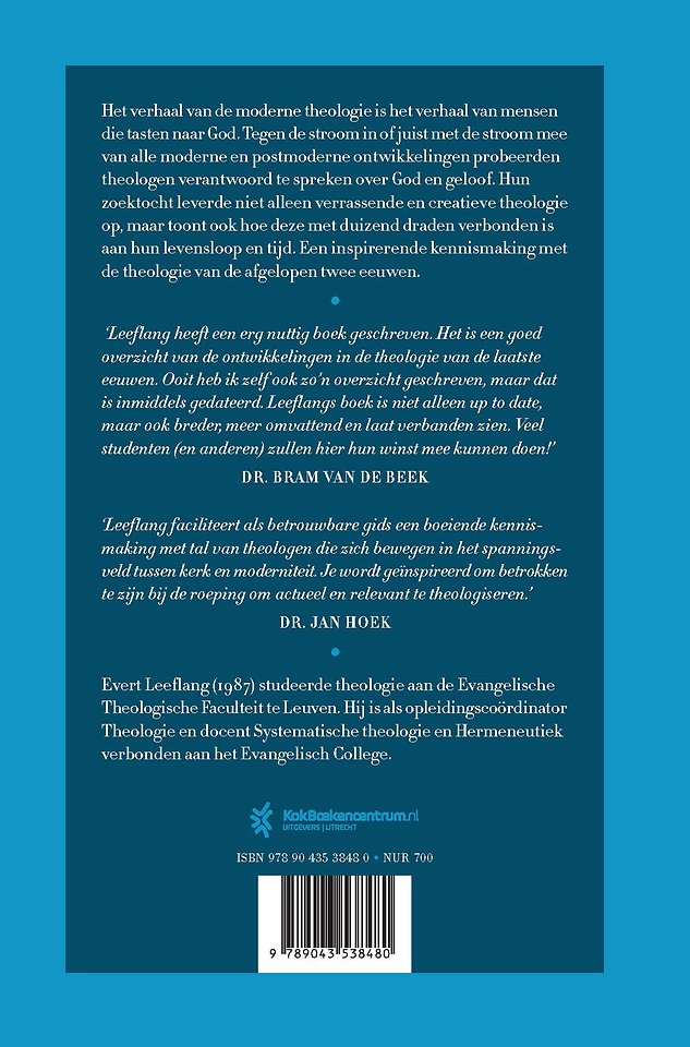 Tasten naar God van Evert Leeflang is een boeiende introductie op de samenhang van theologie en cultuur in de afgelopen twee eeuwen. Het verhaal van de moderne theologie is het verhaal van mensen die tasten naar God. Tegen de stroom in of juist met de stroom mee van alle moderne en postmoderne ontwikkelingen probeerden theologen verhelderend te spreken over God en geloof. Hun zoektocht leverde niet alleen verrassend boeiende en creatieve theologie op, maar toont ook hoe deze met duizend draden verbonden is aan hun levensloop en tijd.
