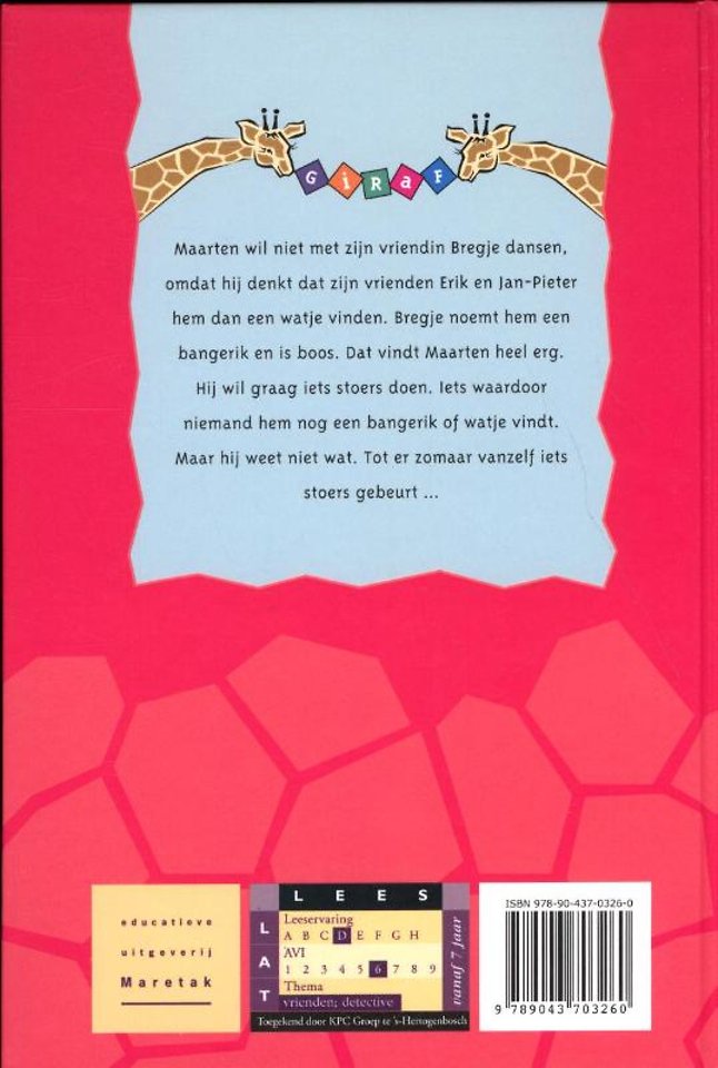 Maarten wil niet met Bregje dansen, omdat hij denkt dat Erik en Jan-Pieter hem dan een watje vinden. Bregje vindt hem naar een bangerik en is boos. Dat vindt Maarten heel erg. Hij wil graag iets stoers doen. Iets waardoor niemand hem een bangerik of watje vindt. Maar hij weet niet wat.