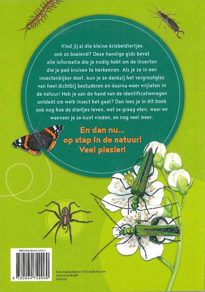 Vind jij al die kleine kriebeldiertjes ook zo boeiend? Deze handige gids bevat alle informatie die je nodig hebt om de insecten die je pad kruisen te herkennen. Als je ze in een insectenkijker doet, kun je ze dankzij het vergrootglas van heel dichtbij bestuderen en daarna weer vrijlaten in de natuur! Heb je aan de hand van de identificatievragen ontdekt om welk insect het gaat? Dan lees je in dit boek ook nog hoe de diertjes leven, wat ze graag eten, waar en wanneer je ze kunt vinden, en nog veel meer.