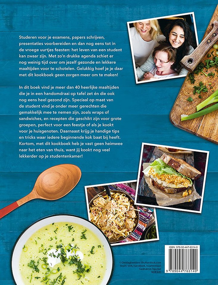 Studeren voor je examens, papers schrijven en dan ook nog eens tot in de vroege uurtjes feesten: het leven van een student kan zwaar zijn. Gelukkig tover je met dit hippe en tasty kookboek tal van lekkere maaltijden op tafel die niet veel tijd en geld kosten en ook nog eens heel gezond zijn. Daarnaast biedt dit boek ook gerechten die gemakkelijk mee te nemen zijn, zoals wraps of sandwiches, en recepten die geschikt zijn voor grote groepen, perfect voor een feestje of als je kookt voor je huisgenoten. En tot slot krijg je een heleboel handige tips en tricks waar iedere beginnende kok baat bij heeft. Kortom, met dit studentenkookboek heb je vast geen heimwee naar het eten van thuis, want jij kookt nog veel lekkerder op je studentenkamer! Mooie, gebonden uitgave. Ideaal als cadeau!