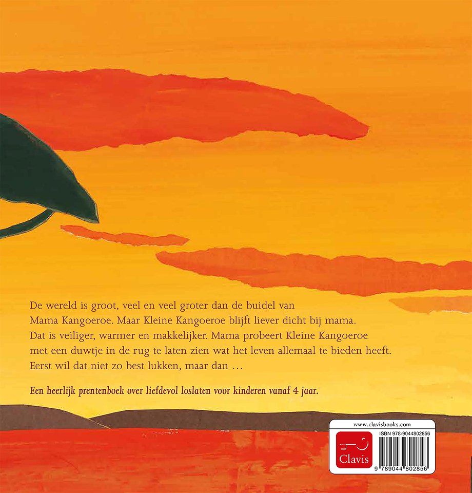 De wereld is groot, veel en veel groter dan de buidel van Mama Kangoeroe.Maar Kleine Kangoeroe blijft liever dicht bij mama. Dat is veiliger, warmer en makkelijker. Mama probeert Kleine Kangoeroe met een duwtje in de rug te laten zien wat het leven allemaal te bieden heeft. Eerst wil at niet zo best lukken, maar dan ...