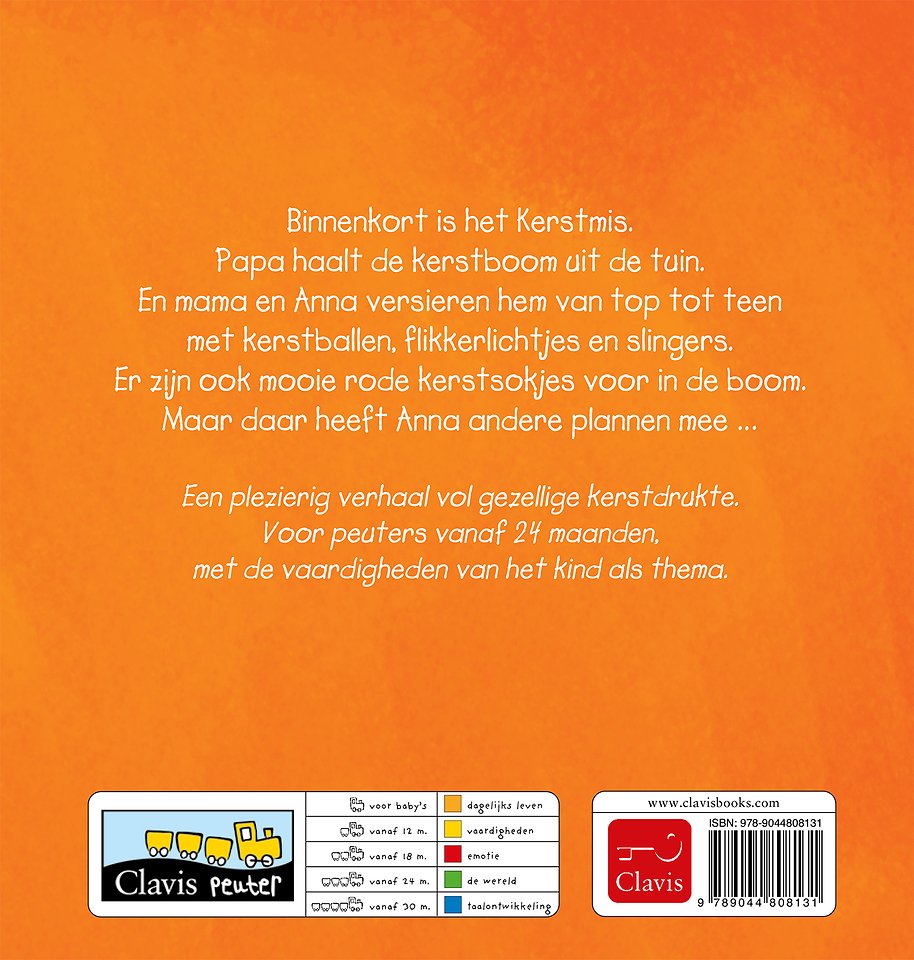 Binnenkort is het Kerstmis. Papa haalt de kerstboom uit de tuin. En mama en Anna versieren hem van top tot teen met kerstballen, flikkerlichtjes en slingers. Er zijn ook mooie rode kerstsokjes voor in de boom. Maar daar heeft Anna andere plannen mee...