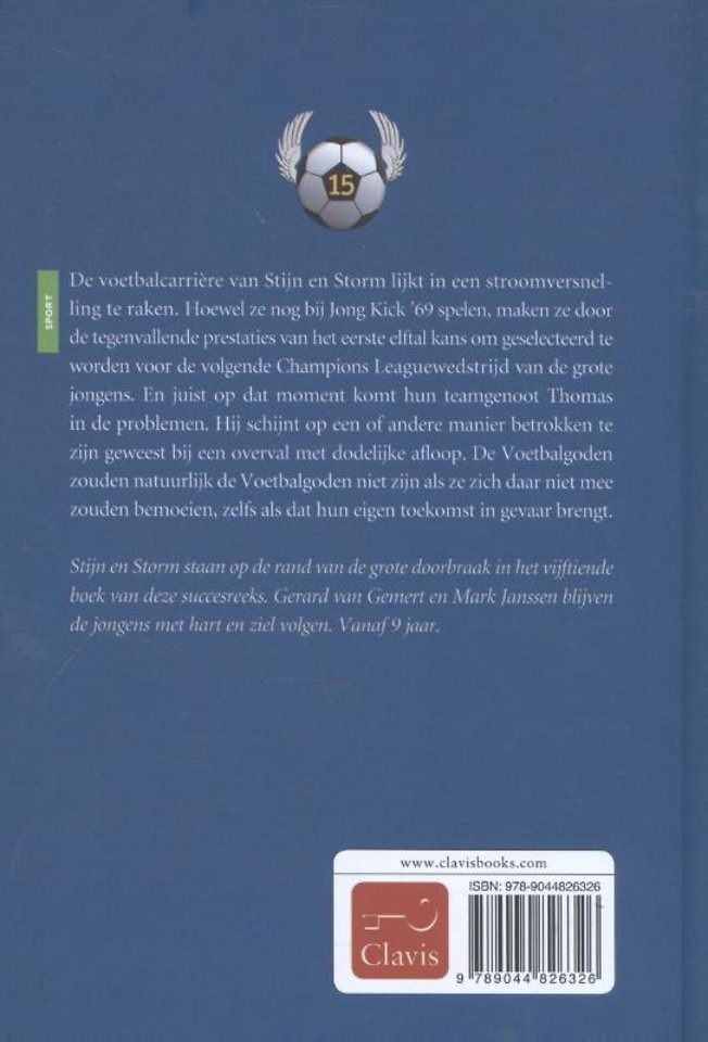 De voetbalcarrière van Stijn en Storm lijkt in een stroomversnelling te raken. Hoewel ze nog bij Jong Kick '69 spelen, maken ze door de tegenvallende prestaties van het eerste elftal kans om geselecteerd te worden voor de volgende Champions Leaguewedstrijd van de grote jongens. En juist op dat moment komt hun teamgenoot Thomas in de problemen. Hij schijnt op een of andere manier betrokken te zijn geweest bij een overval met dodelijke afloop. De Voetbalgoden zouden natuurlijk de Voetbalgoden niet zijn als zich ze daar niet mee zouden bemoeien, zelfs als dat hun eigen toekomst in gevaar brengt.