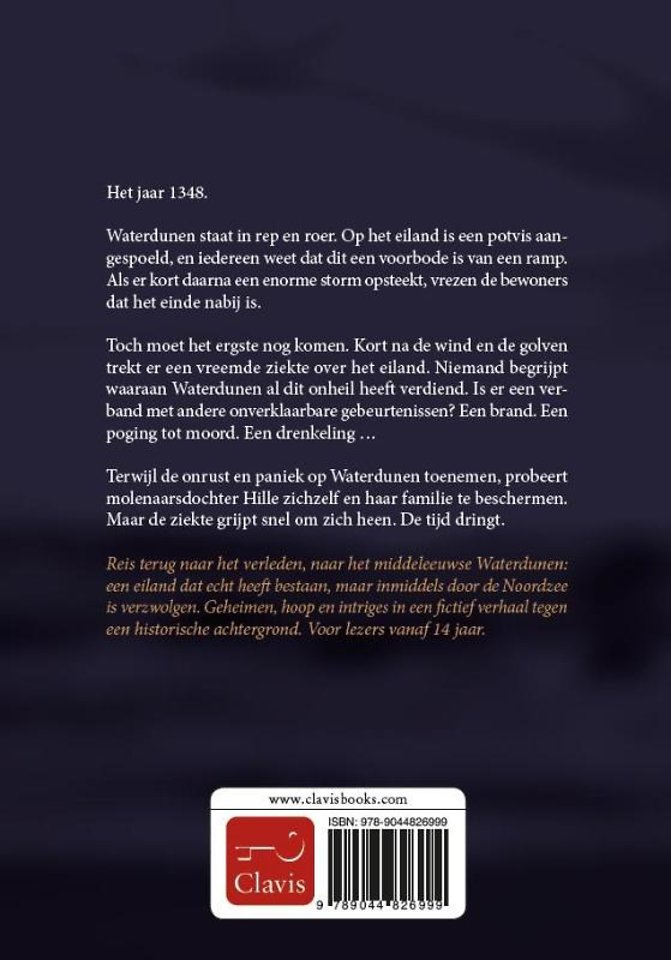 Het jaar 1348. Waterdunen staat in rep en roer. Op het eiland is een potvis aangespoeld, en iedereen weet dat dit een voorbode is van een ramp. Als er kort daarna een enorme storm opsteekt, vrezen de bewoners dat het einde nabij is. Toch moet het ergste nog komen. Kort na de wind en de golven trekt er een vreemde ziekte over het eiland. Niemand begrijpt waaraan Waterdunen al dit onheil heeft verdiend. Is er een verband met andere onverklaarbare gebeurtenissen? Een brand. Een poging tot moord. Een drenkeling ... Terwijl de onrust en paniek op Waterdunen toenemen, probeert molenaarsdochter Hille zichzelf en haar familie te beschermen. Maar de ziekte grijpt snel om zich heen. De tijd dringt.