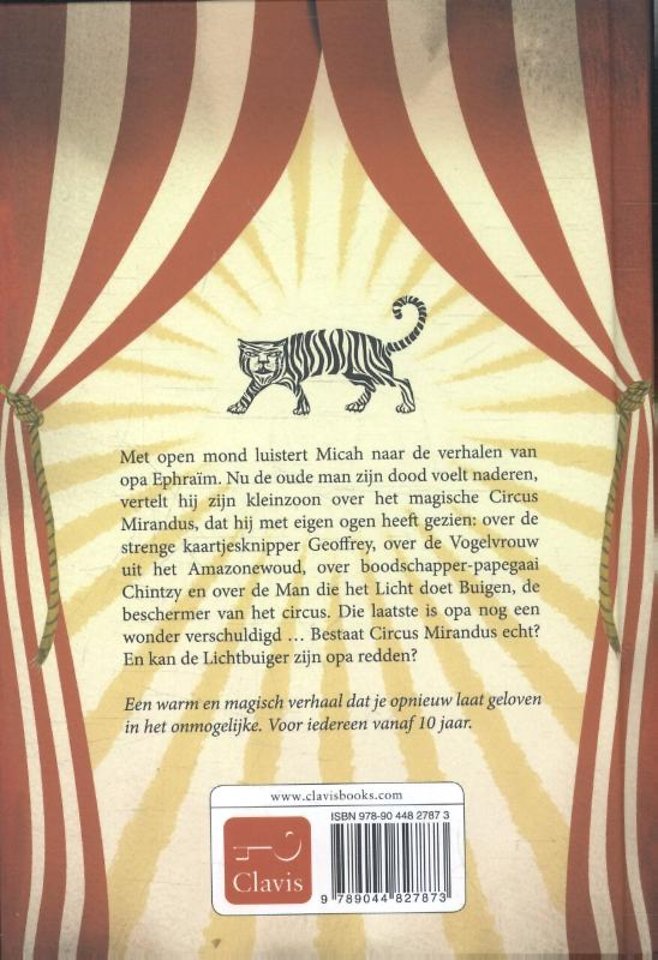 Met open mond luistert Micah naar de verhalen van opa Ephraïm. Nu de oude man zijn dood voelt naderen, vertelt hij zijn kleinzoon over het magische Circus Mirandus, dat hij met eigen ogen heeft gezien: over de strenge kaartjesknipper Geoffrey, over de Vogelvrouw uit het Amazonewoud, over boodschapper-papegaai Chintzy en over de Man die het Licht doet Buigen, de beschermer van het circus. Die laatste is opa nog een wonder verschuldigd ... Bestaat Circus Mirandus echt? En kan de Lichtbuiger zijn opa redden?