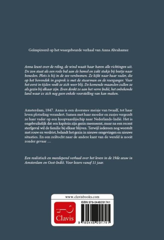 Amsterdam, 1847. Anna is een doorsnee meisje van twaalf, tot haar leven plotseling verandert. Samen met haar moeder en zusjes vergezelt ze haar vader op een koopvaardijschip naar Nederlands-Indië. Het is ongebruikelijk dat een kapitein zijn gezin meeneemt, maar na een recent sterfgeval wil de familie bij elkaar blijven. Terwijl iedereen nog worstelt met rouw en verdriet, belandt het gezin in nieuwe omgevingen en nieuwe situaties. En een zeiltocht naar de andere kant van de wereld is nooit zonder gevaar ...
